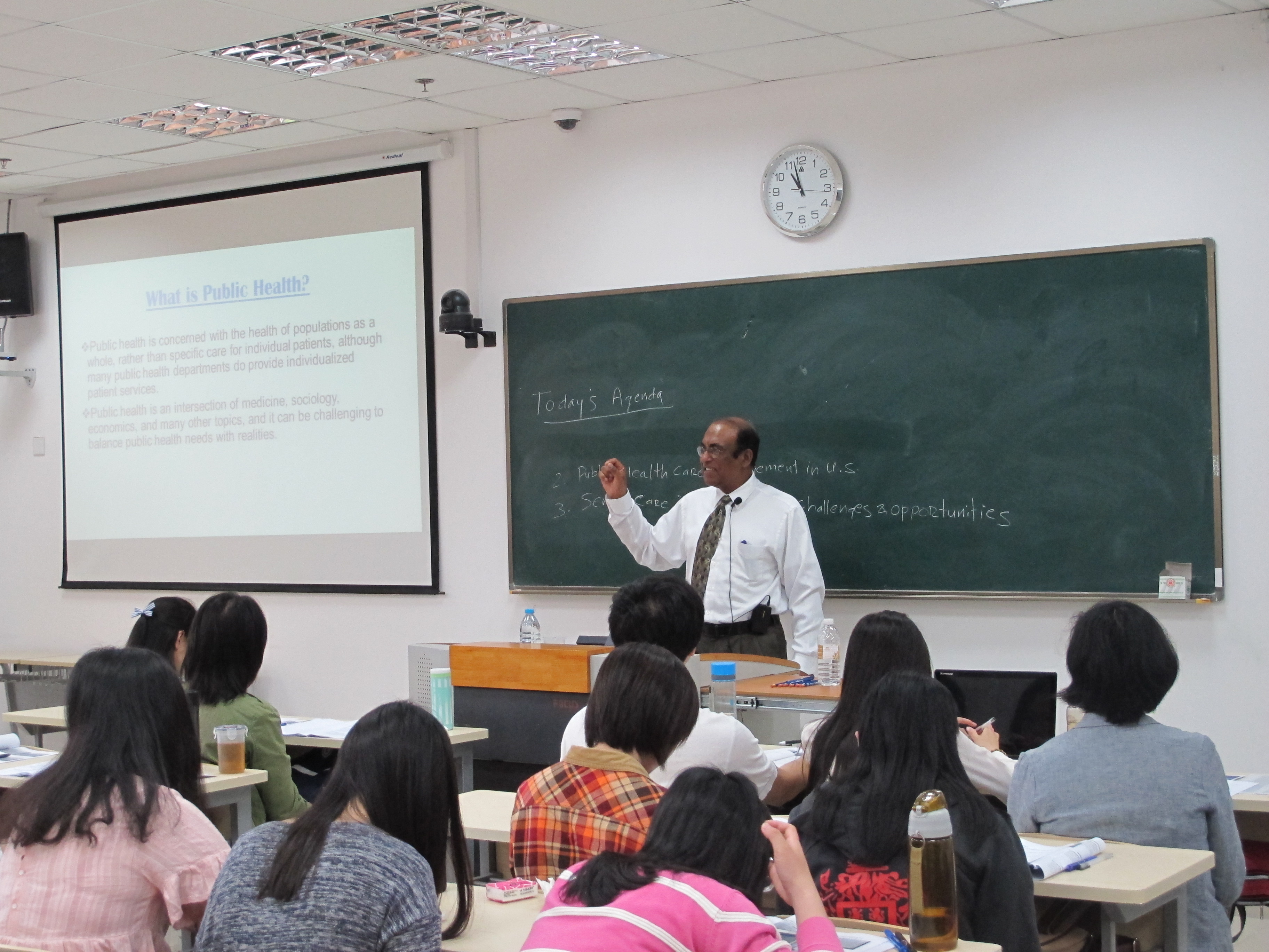 Dr. Rajendra Reddy为公共事业管理专业学生讲课