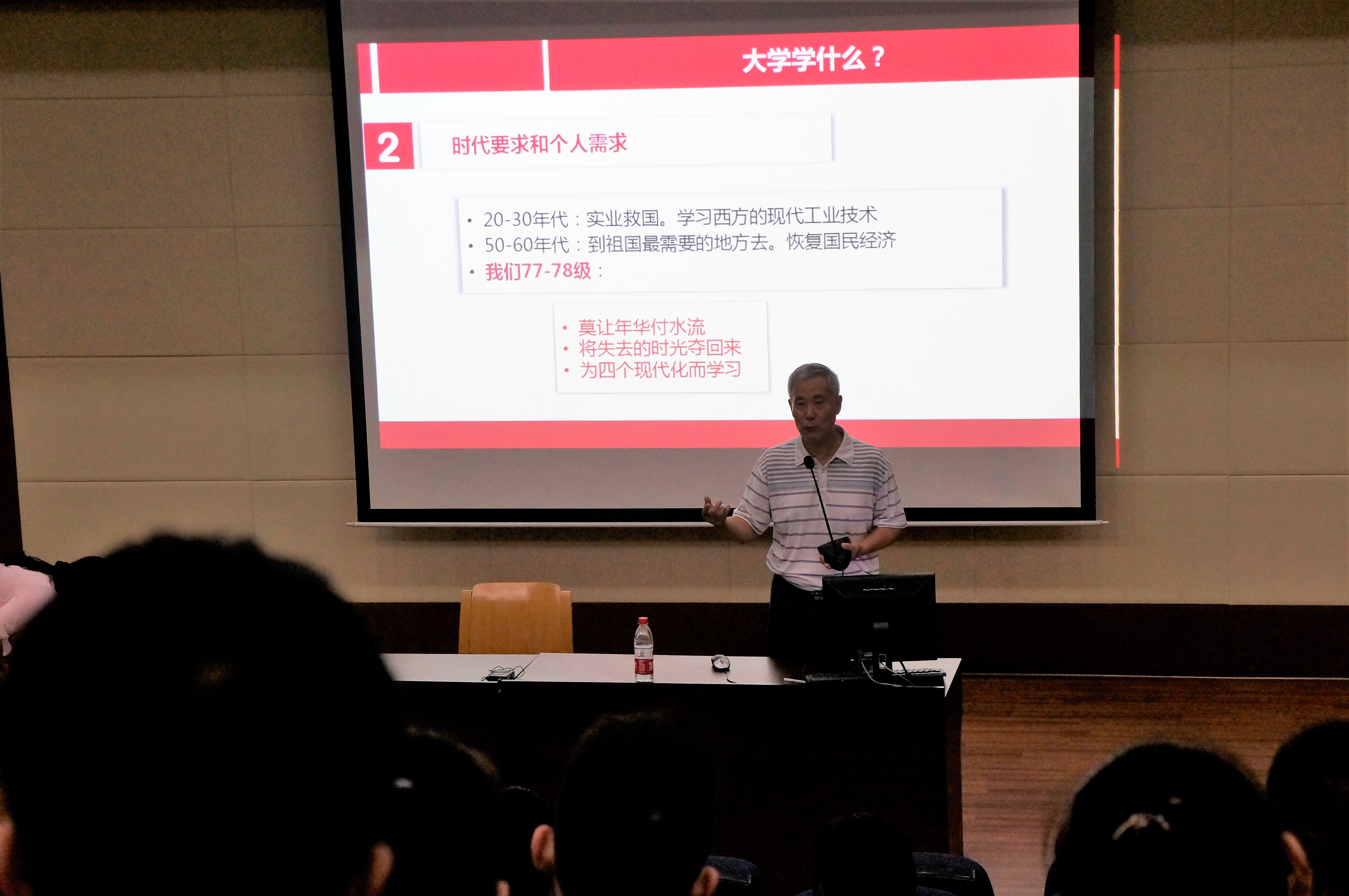 2018年8月27日19点,于6504教室,明德导师团张黎声教授为2018级萌新们开启了大学第一课,目的是使2018级新生尽快融入大学生活,明确学习目标,使个人符合社会需要和时代需求。