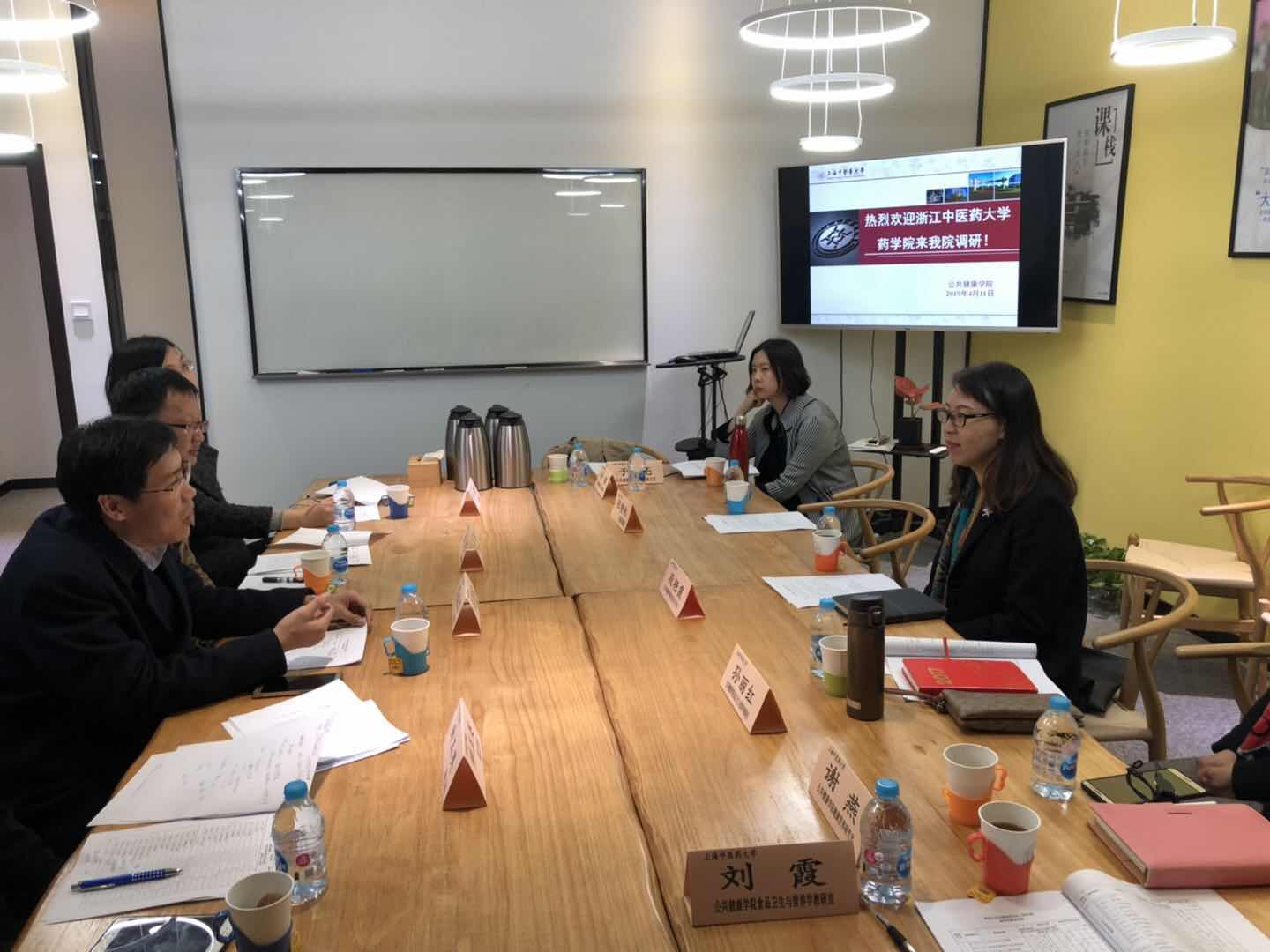 4月11日上午,由浙江中医药大学食品卫生与营养学专业负责人夏道宗教授带队的一行4人来金沙官网访问交流。金沙集团wwW3354CC党总支书记段艳霞、副院长张赟彬、办公室于亮、健康营养研究室谢燕、食品卫生与营养学教研室许琪、孙丽红、刘霞等老师参加了座谈。