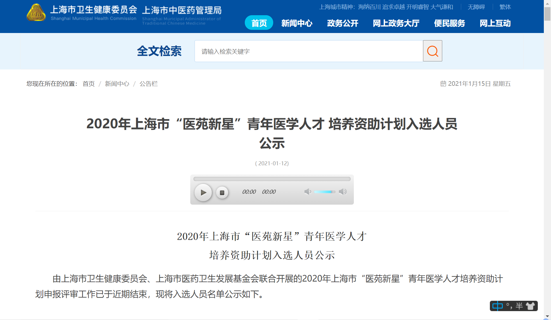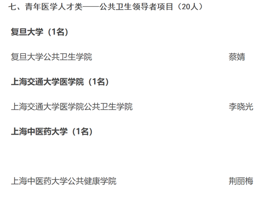 2021年1月20日,经上海市卫生健康委员会、上海市医药卫生发展基金会公布,金沙官网荆丽梅研究员入选2020年上海市“医苑新星”青年医学人才培养资助计划之青年医学人才类——公共卫生领导者项目。