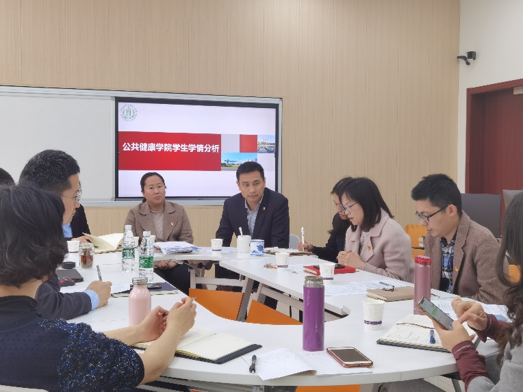 本次会议主要围绕学院班风学风建设,加强学生学业管理开展分析研讨。会上,辅导员老师对全院4个年级12个班级的学习情况展开介绍,分析统计了各班入学以来的学业进步和困难状况,特别针对各班学业困难学生的情况从学习、生活和思想等各个方面现状进行汇报。针对学生在学习中暴露出来的问题,与会人员进行深入探讨交流。班主任老师分别交流了对学业困难学生的学习能力、学习方法、学习心理等方面的指导和心得。管理教研室主任张安老师认为,思想是行为的先导,要重点关注学生的思想和心理状况,解决思想问题,对解决学业问题有重要促进作用。