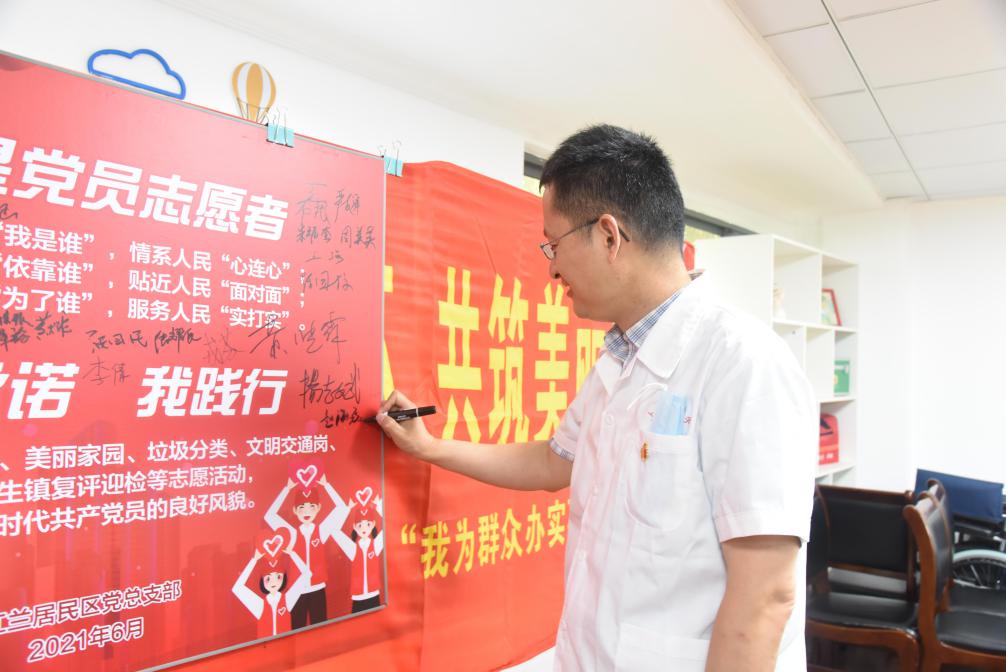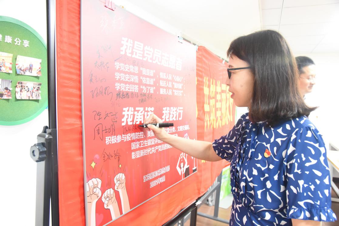 活动结束后,党员们在宣传板上进行党员志愿者签名。此次活动的开展,为党员服务社区提供了较好的机会,也加深了社区居民与我校的联络。在建党100周年之际,金沙官网党总支将继续秉承“不忘初心、牢记使命”的信念,持续为社会健康、人民幸福贡献自己一份力量,用实际行动为建党百年献礼。