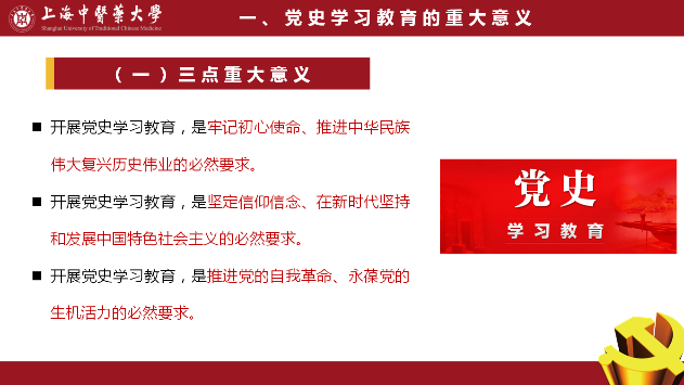 段书记强调党史学习教育的十六字总要求:学史明理、学史增信、学史崇德、学史力行。点明只有学史明理,才能把握历史规律,明确历史发展走势和大方向。通过学习党史,要“明”中国共产党为什么能之“理”“明”马克思主义为什么行之“理”“明”中国特色社会主义为什么好之“理”,唯有如此方能行稳致远。