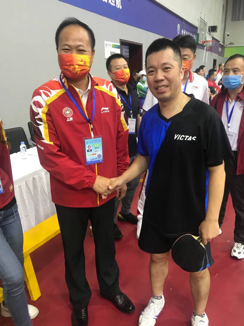 9月22日,在第十四届全运会群众赛事活动乒乓球比赛项目中,金沙官网谢国群副院长作为上海代表队的一员,奋力拼搏,发挥出色,夺得40-49岁组男子单打比赛铜牌。上海市体育局赵光圣巡视员观摩了比赛,对谢国群副院长的获奖表示祝贺。