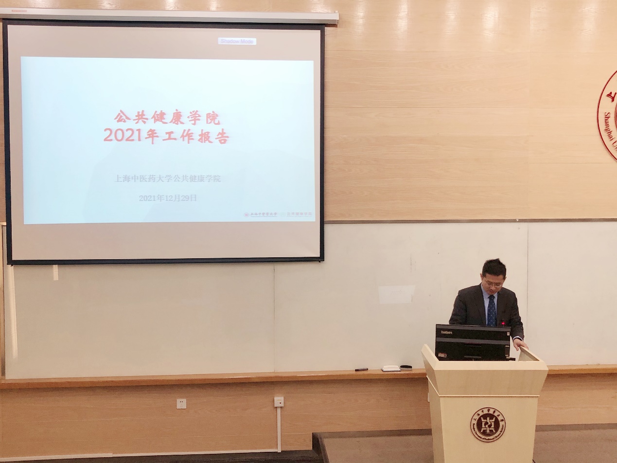 会上,赵海磊院长做了《金沙集团wwW3354CC2021年度工作报告》。赵院长分别从党建工作、师资队伍建设、人才培养、学科发展和“三全”育人体系构建等方面总结了2021年学院工作所取得的成绩。同时,也指出学院在学科发展领军人才引进和培育、具有教学改革显示度的一流教学项目建设、教学和科研团队建设、公共卫生专业硕士学位点建设、科研成果转化等方面存在的困难,并提出了具体应对措施。他希望大家面对发展中存在的问题,凝神聚力、积极进取、攻坚克难,在2022年继续推进学院综合治理体系建设,持续推进教学改革和产学研合作,提质建设“教学质量、教师质量、学生质量”三大质量工程;加速突破学科建设瓶颈,积极推进与“中医药特色的公共卫生与预防医学”学科发展更为契合的科研工作开展,提升教学科研工作的广度和深度。