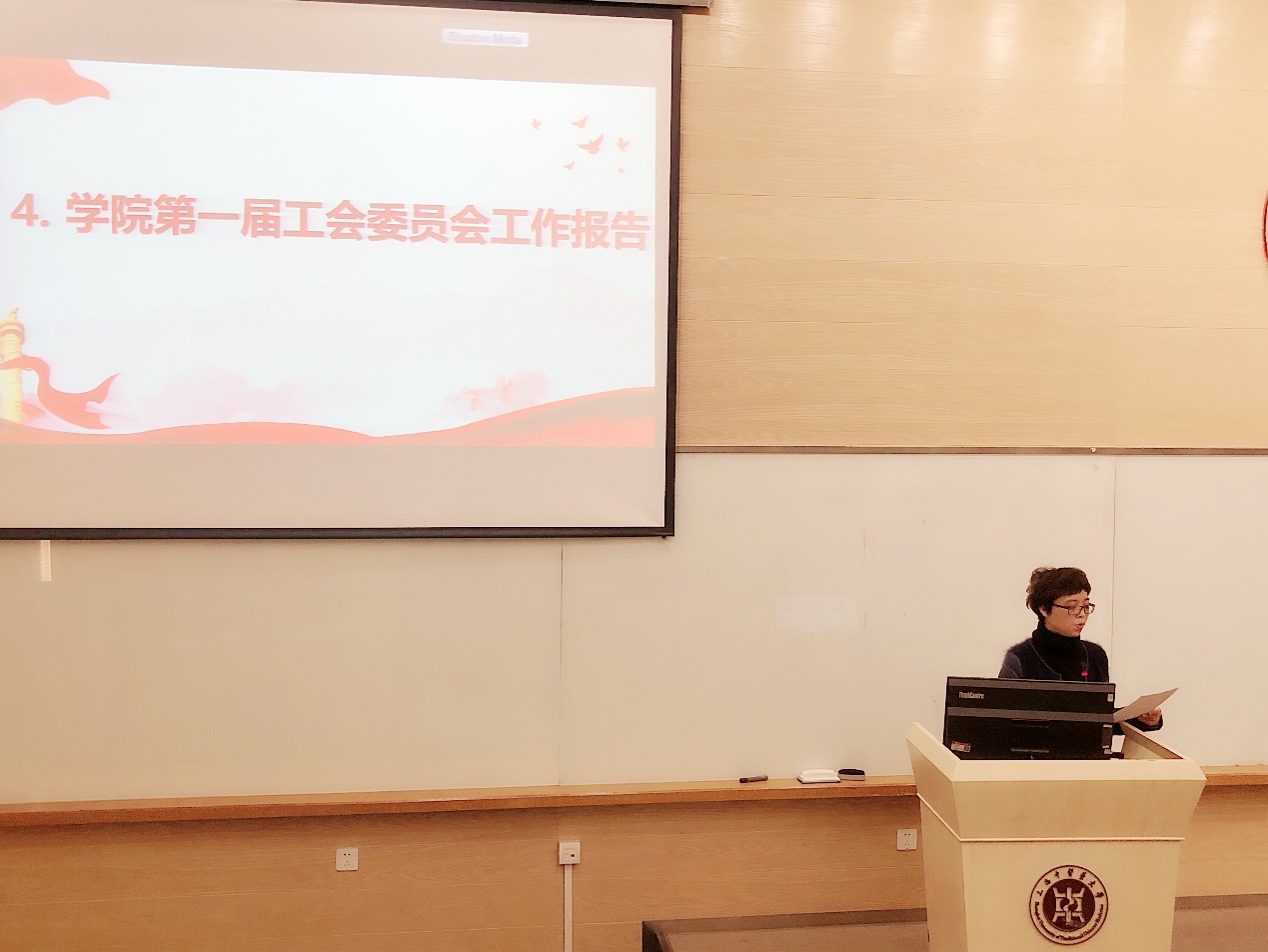 学院工会主席李敏老师做了《金沙集团wwW3354CC第一届工会委员会工作报告》,全面回顾了自2015年学院第一届工会成立至今的工会工作。过去的五年中,学院工会在学院党总支带领下,始终坚持以习近平新时代中国特色社会主义思想和科学发展观统领工会工作全局,坚持“以人为本、以实为要、营造温馨、注重服务”的工作理念,把关系到教职工工作、学习、家庭、健康等切身利益问题摆在重要的位置。通过内容丰富、形式多样的工会活动,营造凝心聚力的学院文化氛围;发挥服务职能,增强教职员工的获得感和幸福感;加强工会建设,提升能力水平,推进民主管理;传递正能量,进一步激发教职员工建功立业谋发展的情怀。