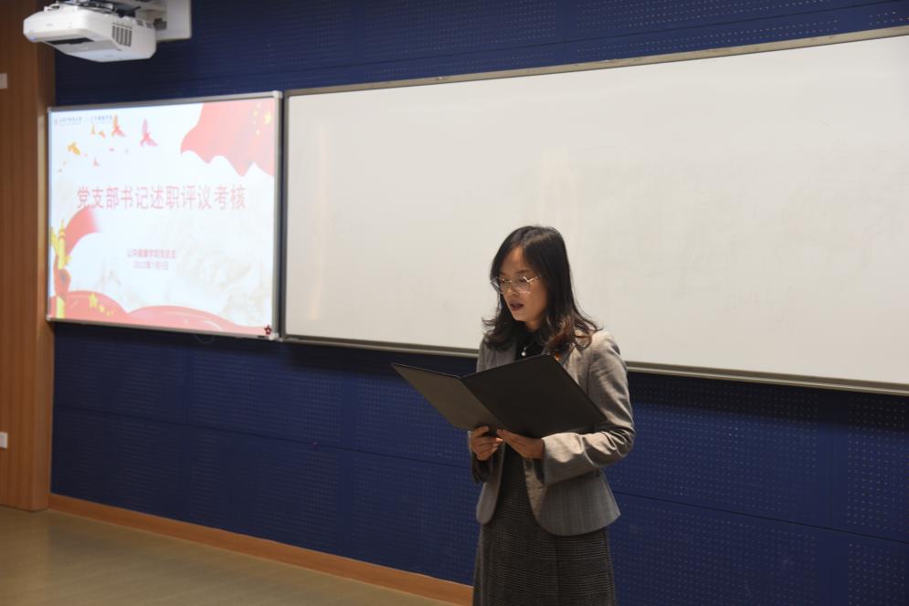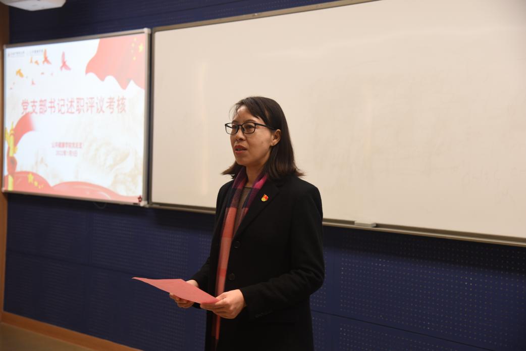 教工第一党支部书记张安、教工第二党支部书记谢燕、学生党支部书记冉秋分别作述职汇报。干旦峰对教工第一党支部及支部书记工作点评,在政治站位、理论水平、组织生活规范性和工作成效四方面给予肯定,同时提出进一步总结经验,用于剖析不足根源,仔细做好查改。党建督导张海凤对教工第二党支部及支部书记工作点评,认为支部在学习理论较全面、党建导师助力学生党员发展和结合党史学习教育办实事等方面有一定成绩,希望支部进一步凝练特色,尤其在理论学习指导课程教学方面多下功夫。组织员江慧芬围绕“三会一课”制度实施、党史学习教育开展和党员发展工作三方面对学生党支部及支部书记工作进行点评,肯定支部工作的同时,建议进一步梳理总结、凸显特色。