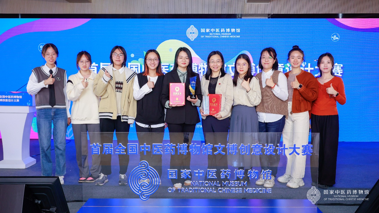 图 上海中医药博物馆张宇奇老师、我校金沙集团wwW3354CC梁婧茗同学共同出席全国中医药博物馆文博创意设计大赛决赛现场