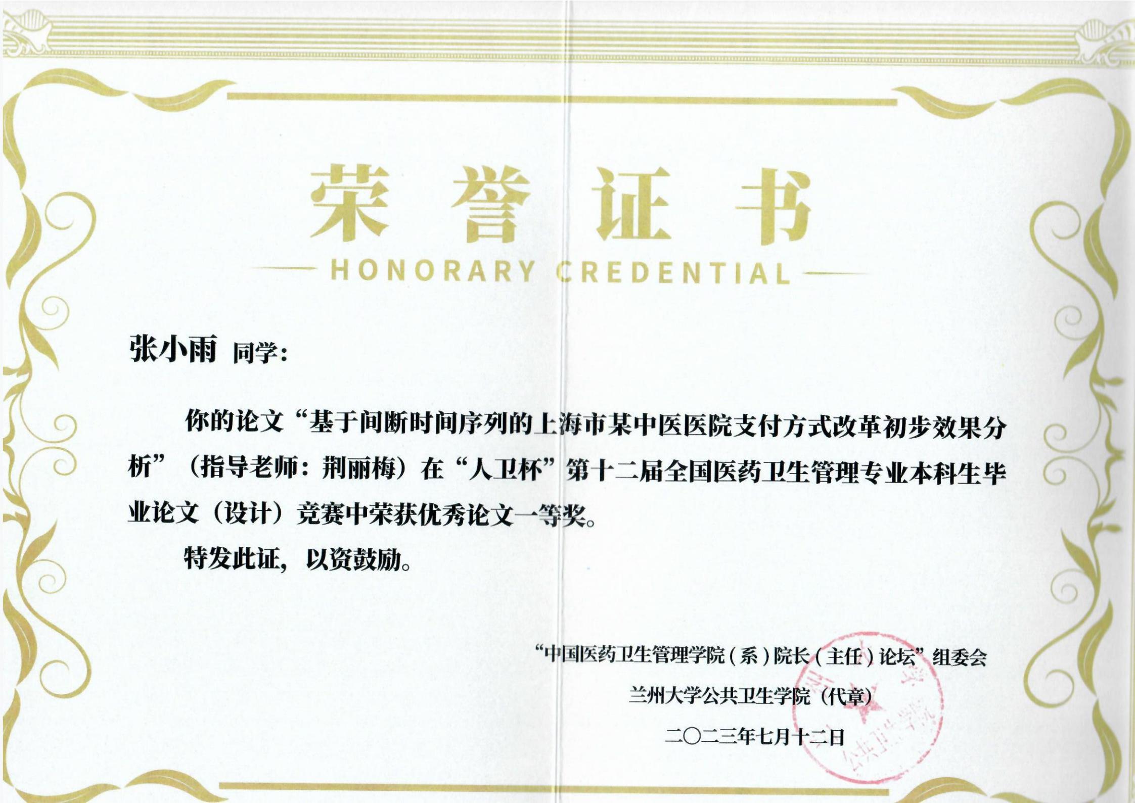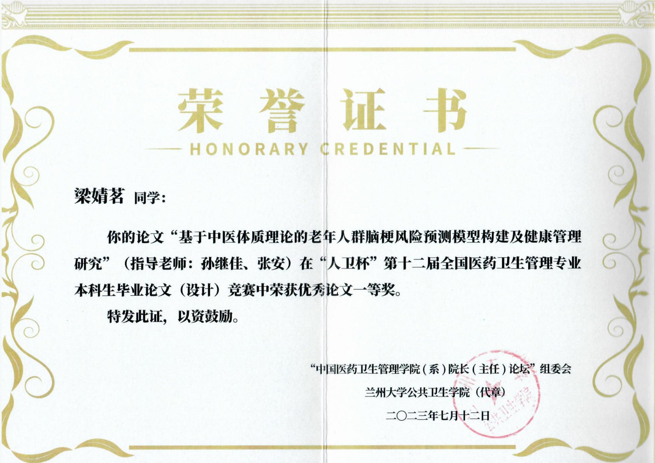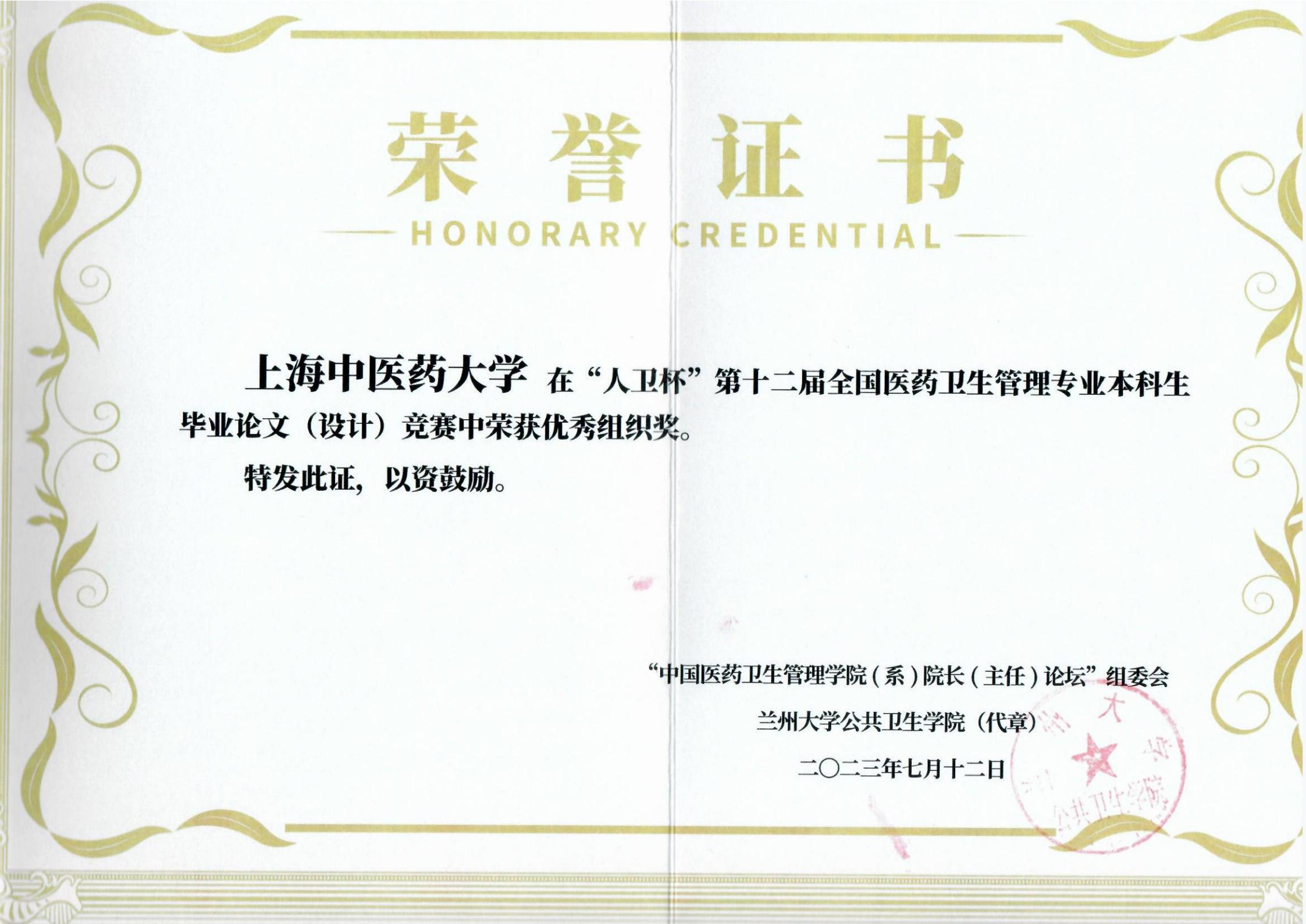 7月11日—13日,第19届中国医药卫生管理学院(系)院长(主任)论坛暨“人卫杯”第十二届全国医药卫生管理专业本科生毕业论文(设计)竞赛在兰州举行。金沙集团wwW3354CC组织参赛的3篇本科生毕业论文分别获一等奖(2项)、三等奖(1项),我校同时获得赛事优秀组织奖。