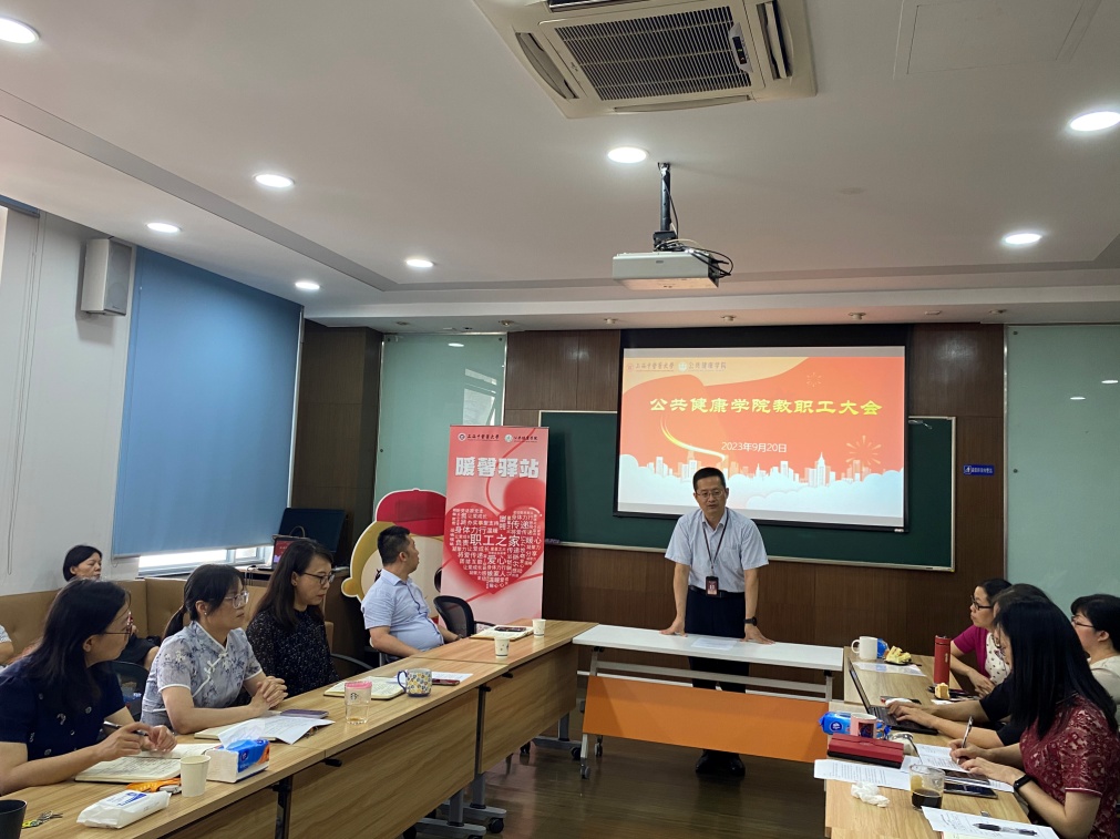 赵海磊院长对2023年上半年学院各项工作取得的进展做了回顾和总结,向全体教职工传达新学期学校重点工作。他指出,下半年我们要继续深入学习贯彻习近平新时代中国特色社会主义思想和党的二十大精神,全面落实校党委各项教育工作部署,坚持立德树人根本任务,围绕教育部本科审核评估和公共卫生硕士专项评估积极开展工作。通过举办中医药和公共健康青年学者论坛,加快推进与国内外高水平大学交流合作,吸引高层次人才,提升学院综合实力。