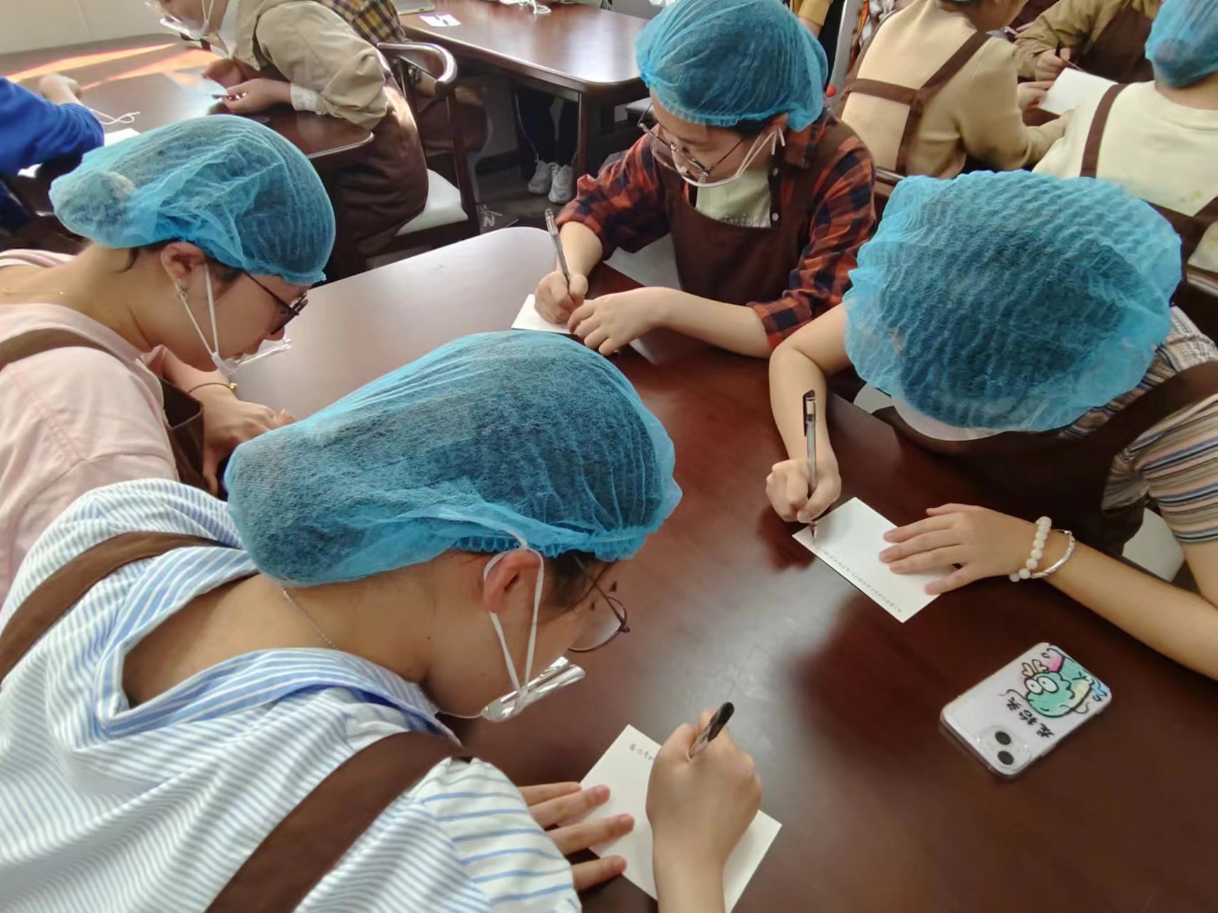 在等待二次发酵和烘烤面包的时间里,李敏老师带领大家再次回到“正念”的世界。同学们两两相对,互相倾听,分享自己的所思所想,寻找共情,探讨差异,感受彼此内心的平静和充实,并将自己的感受记录在小卡片上。