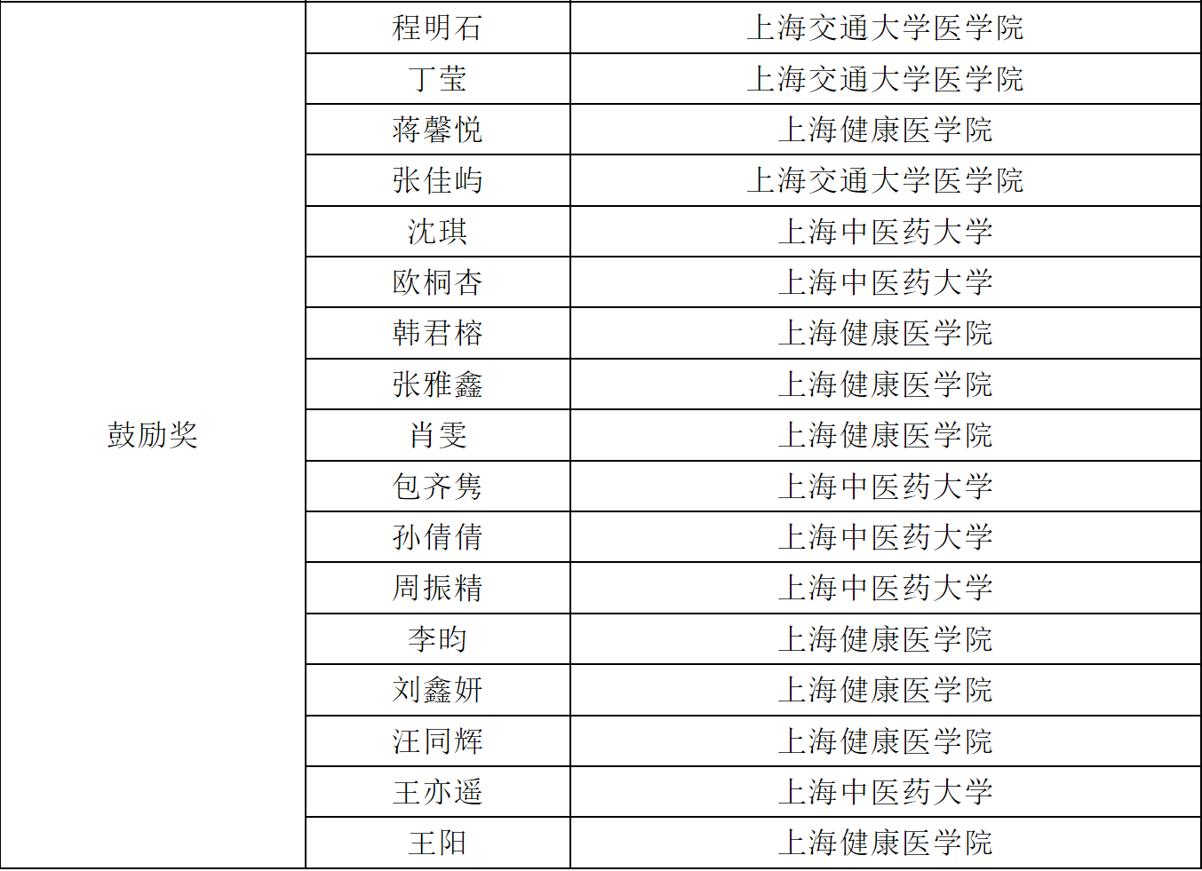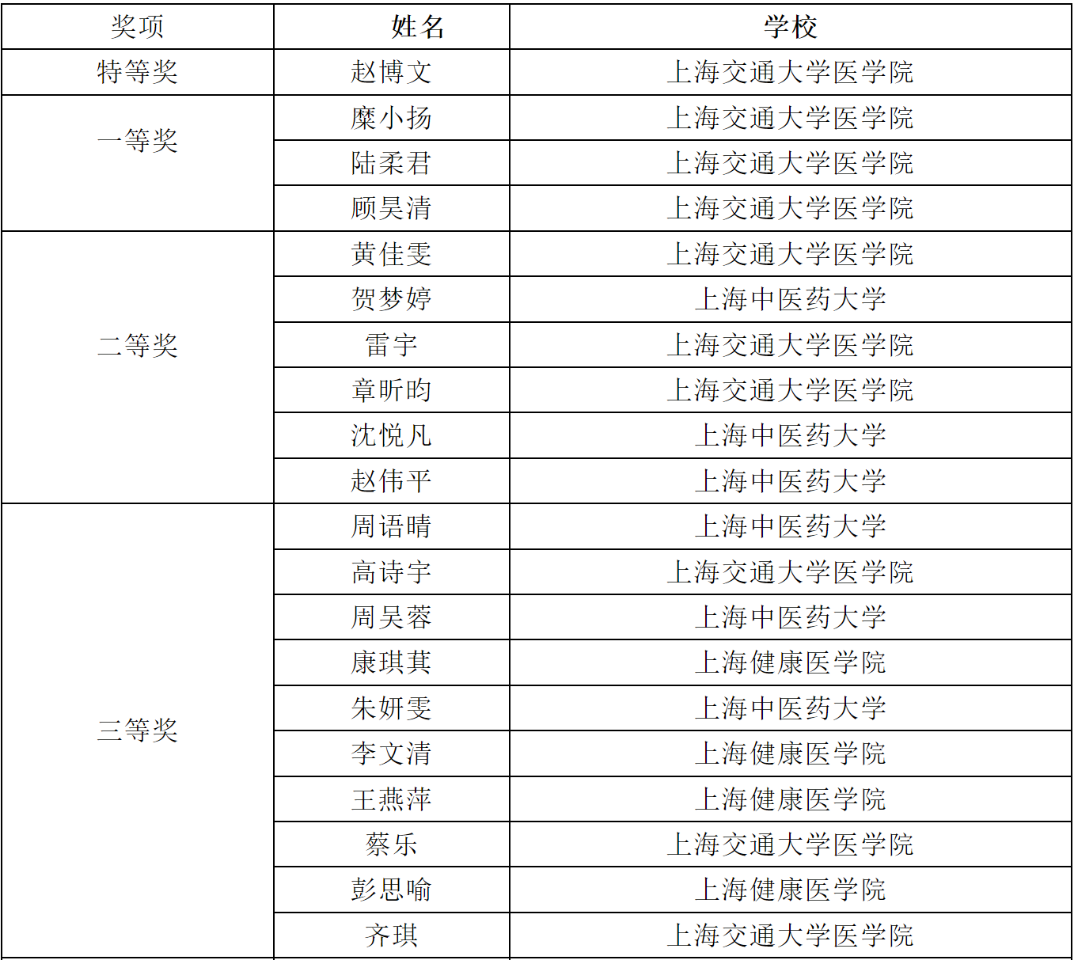 暨首届上海市大学生营养专业技能大赛获奖名单